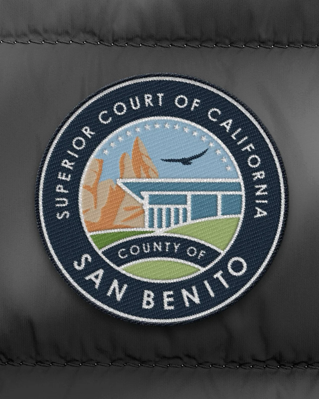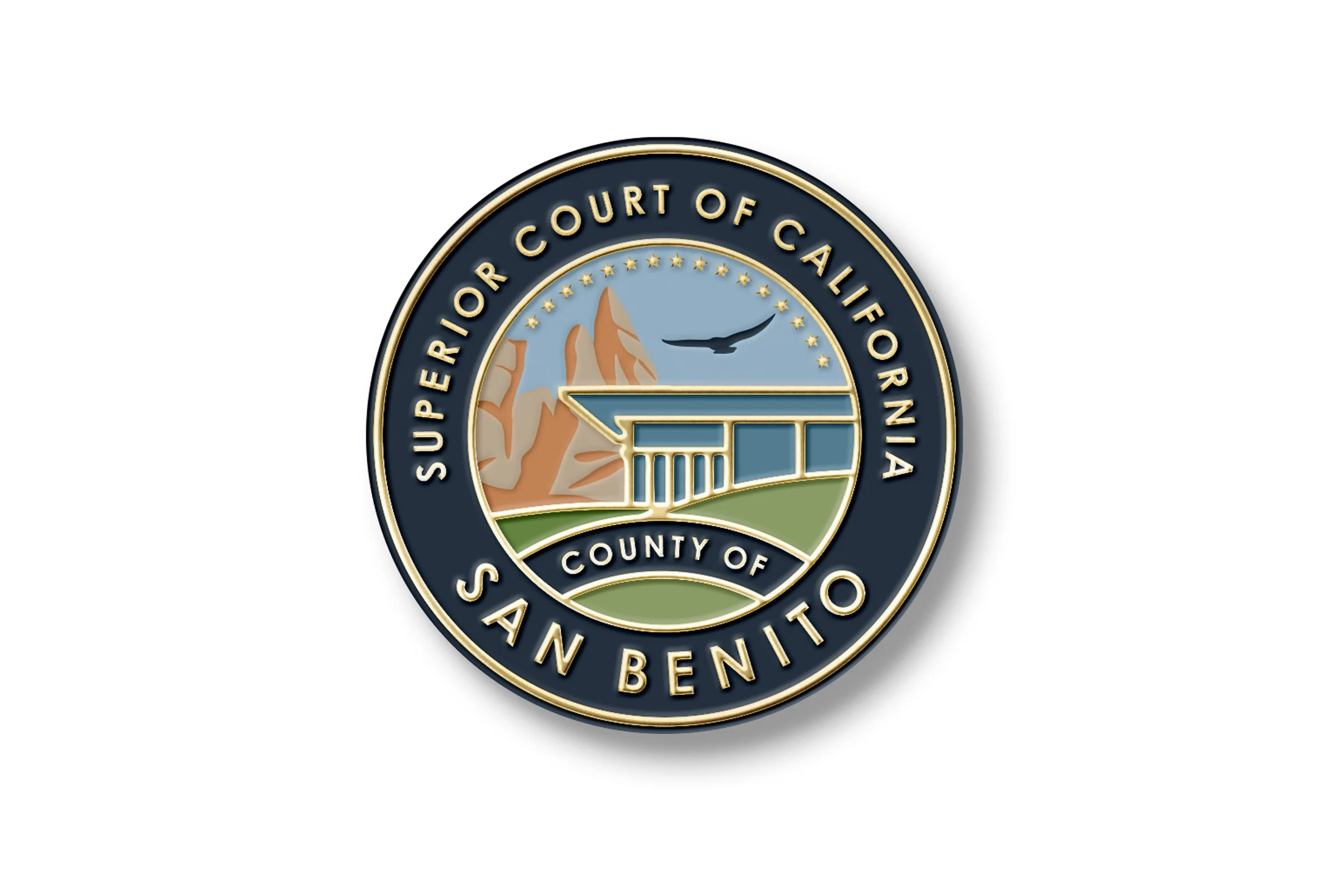 A mark rooted in place and purpose.Graphic for the Superior Court of California, County of San Benito blends symbols of justice with local identity, inspired by the courthouse architecture and the Central Coast landscape—including Pinnacles National Park.